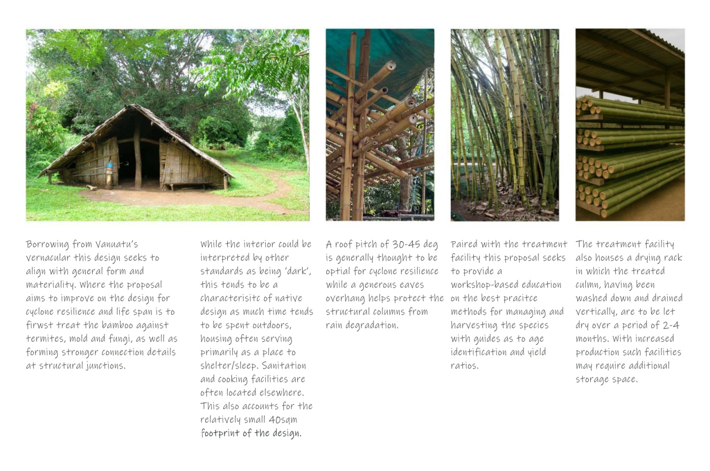 Our team has combined our educational base and project portfolios to date to form an extermely well considered project proposal for a cause we know to be severely needed in a part of the world with very little voice in the conversation of 'climate change'. We've spent time on location as part of other disaster relief efforts as well as project ld another prototype housing project on the island of Fiji. Our experience has also afforded us many hugely beneficial connections in the likes of BambooU, Geeli Mitti, Hello Wood, and more, all focused on natural materials with a shared focus of 'win and help win', a philosophy we all share in working together towards a healthier planet